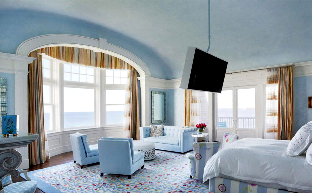 风格方案:灰蓝色艺术漆装饰的天花板,给人一种清新淡雅的感觉。